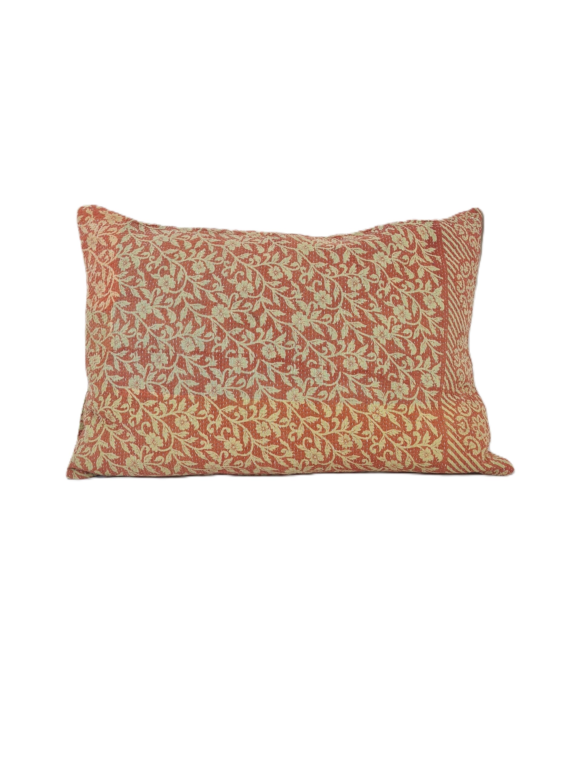 Perfect in their imperfections, each piece is unique. The finely-stitched kantha quilt that this cushion is cut from is made from up to 6 layers of vintage 100% cotton sari and sewn together with thousands of tiny running stitches. A product of female resourcefulness and creativity, Kantha is an age-old Indian tradition. Fabrics are between 40-80 years old. Every quilt is carefully selected for its condition, design, and authentic appeal. Freshly washed to ensure softness.