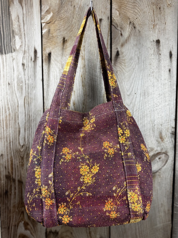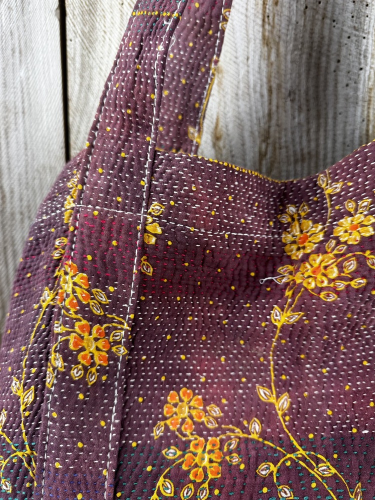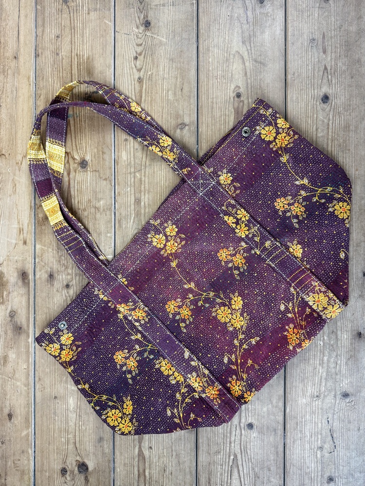 This tote bag is made from a single vintage Kantha quilt, carefully chosen for its quality and design.